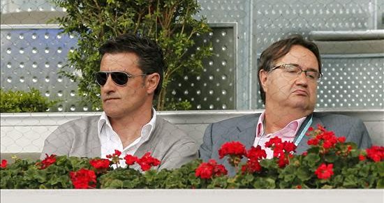 El entrenador del Getafe, José Miguel González, Míchel (i), presencia desde un palco el partido entre Feliciano López y Óscar Hernández.