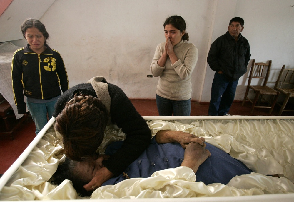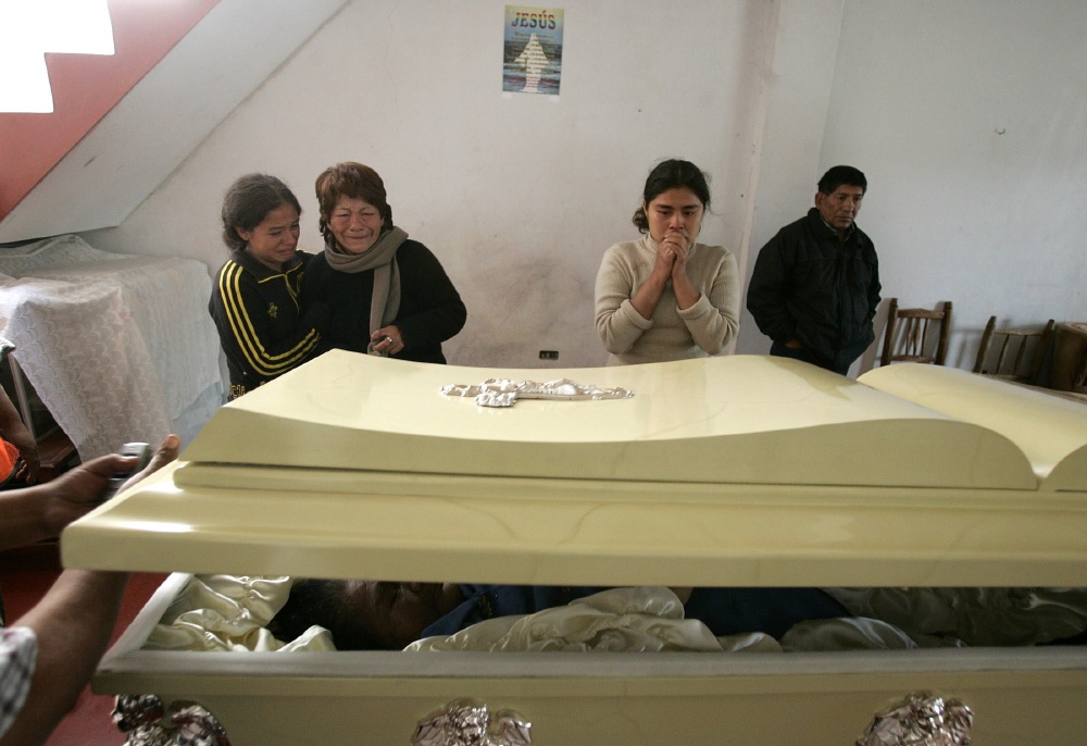 Familiares de la señora Francisca Adela Pecho Alvarez velan sus restos mortales. El gobierno chileno ha manifestado su solidaridad con el gobierno y pueblo peruanos y ofreció el envío inmediato de ayuda. (EFE)