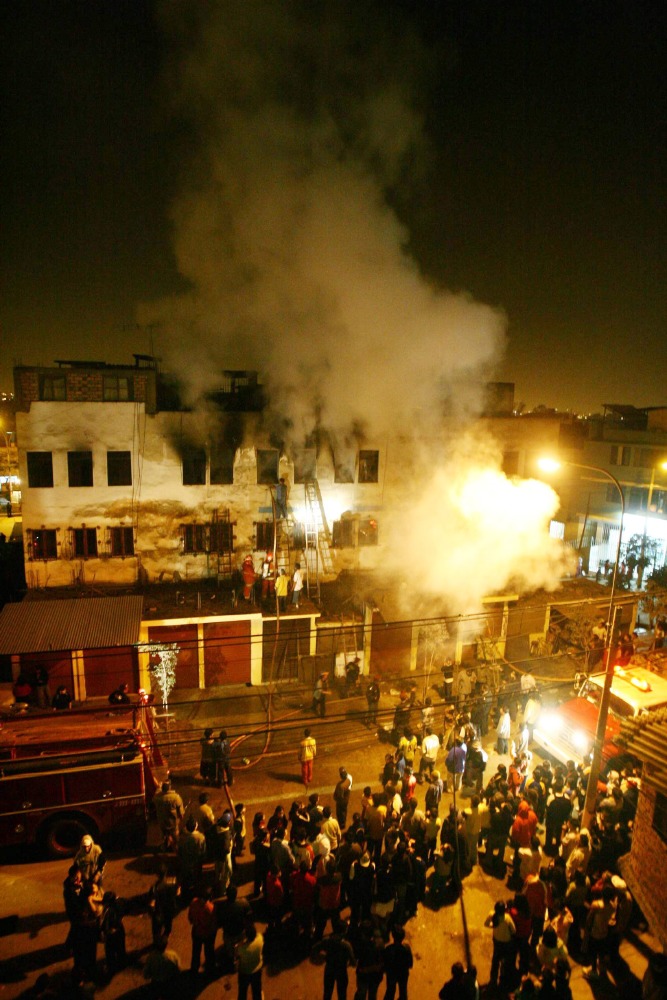 Un incendio en el distrito del Rímac minutos después de los dos fuertes terremotos de 7,7 y 7,5 grados en la escala de Richter, que sacudieron gran parte del país. (EFE)