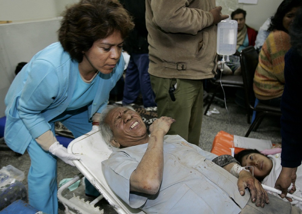 Víctimas del terremoto de 7,9 grados en la escala de Richter que ha sacudido Perú reciben atención en el hospital de Ica, la ciudad más afectada, junto a Pisco, Chincha y Cañete, por el sismo. (EFE)