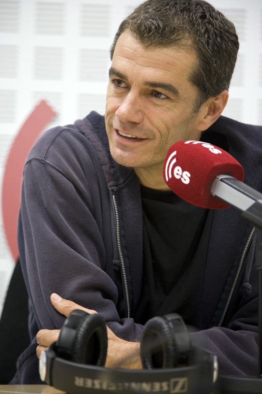 Cantó se ajusta los cascos antes de empezar la entrevista.
