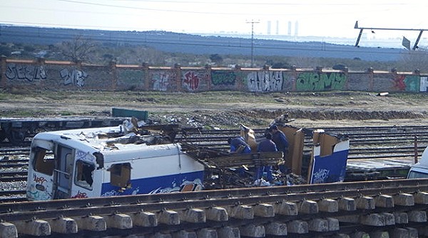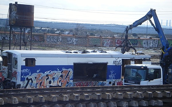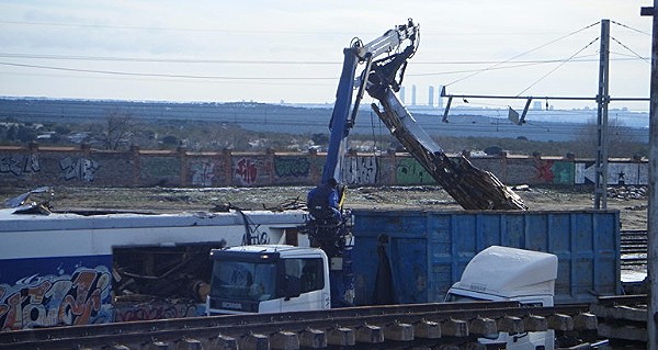 Una gran pieza metálica es separada del vagón (Foto: Carlos Sánchez de Roda)