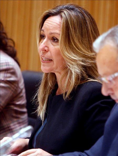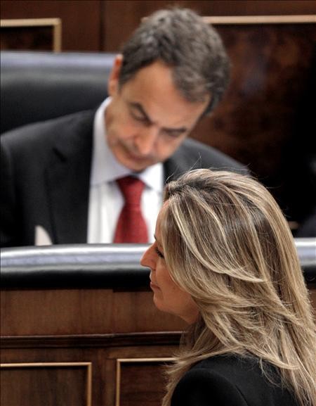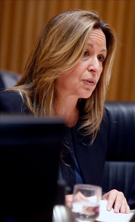 Horas antes de su comparecencia en la comisión de exteriores, una mustia Trinidad Jiménez pasa como alma en pena ante el escaño de Zapatero.