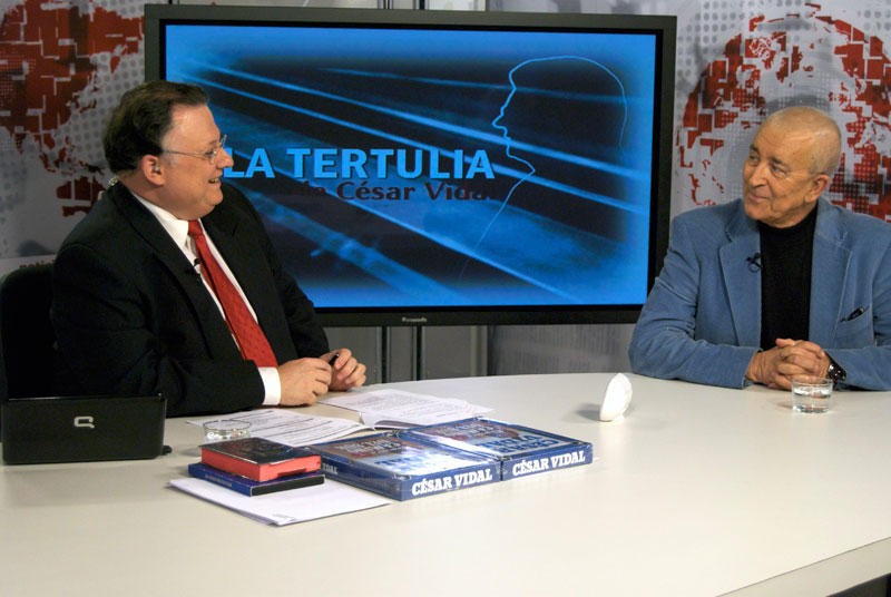 El actor y cantante Francisco Valladares también pasó por los estudios de esRadio y Libertad Digital TV. Fue uno de los invitados de César Vidal en Es la noche de César. Una visita de la que guardamos este recuerdo fotográfico. | LD / David Alonso.