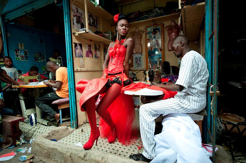 Fotografía tomada por el fotógrafo francés Vincent Boisot de Riva Press para 'Le Figaro Magazine', que ha sido galardonada en la categoría individual de "Artes y Entretenimiento". La imagen muestra a una modelo posando en el taller de un sastre en el centro de Dakar, Senegal el 9 de julio de 2011. EFE/VINCENT BOISOT/RIVA PRESS/LE FIGARO.