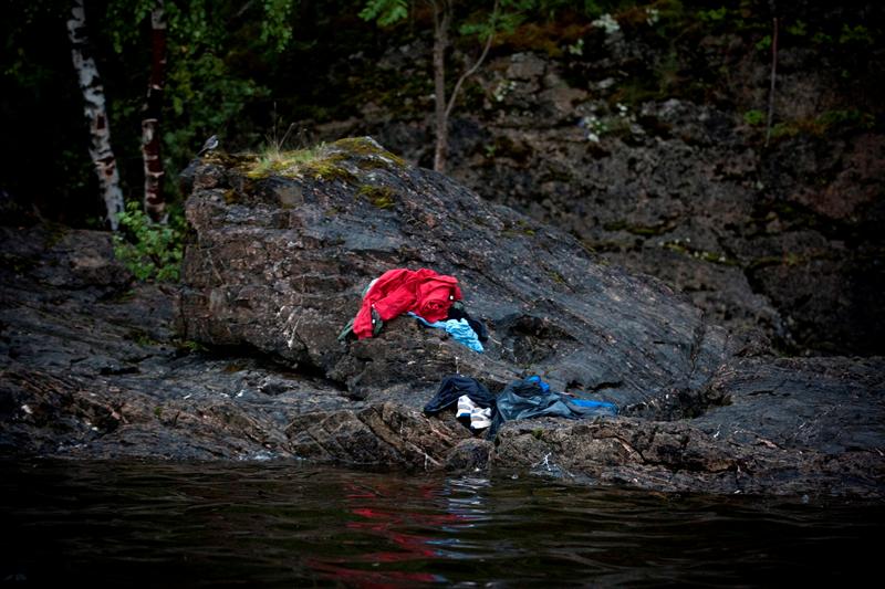Imagen tomada por el fotógrafo sueco Niclas Hammerstroem para Aftonbladet que ha ganado el segundo premio en la categoría de "Foco Informativo". En la imagen se retrata el intento de varias personas de huir de las balas lanzándose en la isla de Utøya. Breivik hizo estallar el pasado 22 de julio un coche bomba en Oslo, donde murieron ocho personas, e inmediatamente después se trasladó a la isla de Utøya, a 45 kilómetros de la capital, donde disparó de forma indiscriminada y mató a otras 69. EFE/Niclas Hammerstroem/Aftonbladet