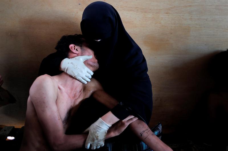 Fotografía tomada por el fotógrafo español Samuel Aranda que ha sido galardonada con el World Press Photo of the Year 2011. Aranda ha sido proclamado hoy viernes 10 de febrero de 2012 vencedor del galardón más importante certamen mundial de fotoperiodismo, por la imagen de un herido en las revueltas de Yemen que es abrazado por una mujer con velo. La instantánea ha sido elegida entre más de 100.000 imágenes realizadas por un total de 5.247 fotógrafos provenientes de 124 países de todo en mundo. En la fotografía, con una composición que recuerda a la escultura "La Piedad" de Miguel Ángel, contrasta el negro del "niqab" (un velo islámico que cubre todo el rostro a excepción de los ojos) con el cuerpo desnudo del joven herido que está en los brazos de la mujer. EFE/SAMUEL ARANDA/ THE NEW YORK TIMES