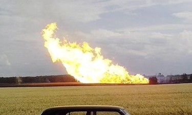 Llamas resultantes de la explosión del gaseoducto en la región de Poltava. | EFE