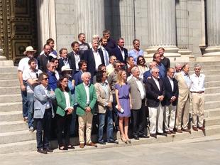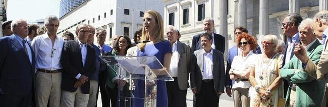 Intelectuales y políticos como Vargas Llosa o José María Fidalgo han leído un manifiesto a las puertas del Congreso.