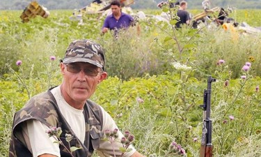 Rebelde Prorruso, en la zona donde cayó el avión, custodiando la cabina del avión | EFE
