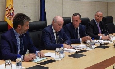 El ministro, con el secretario de Estado de Seguridad y los directores de Policía y Guardia Civil. | Min. Interior