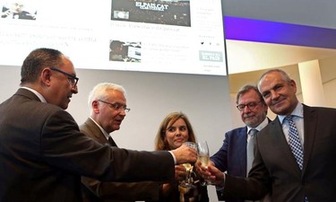 Brindis con Soraya Sáenz de Santamaría en la presentación de la edición digital en catalán de 'El País' | Archivo