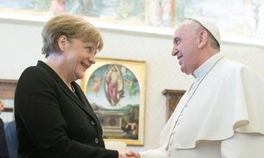 comentarios La canciller alemana y Francisco se reunieron durante 40 minutos en la Sala de Biblioteca del Vaticano.