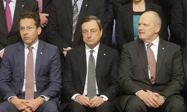 Jeroen Dijsselbloem, Mario Draghi, y Carsten Pillath, en la reunión del viernes | EFE