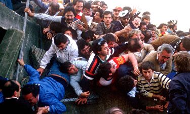 Una multitud de aficionados sufre una avalancha durante la tragedia de Heysel. | Cordon Press