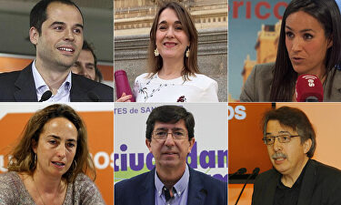 De izquierda a derecha: Aguado, Rivera de la Cruz, Villacís, Punset, Marín y Pericai | Ciudadanos
