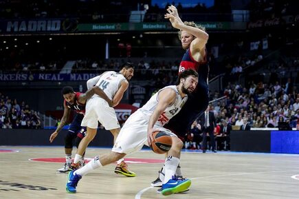 Sergio Llull busca el aro alemán ante John Bryant | EFE Épica blanca y salvador Carroll para tumbar al Bayern (101-99)