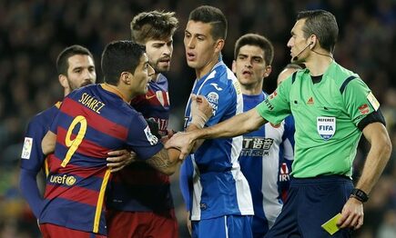 Suárez durante el derbi. | EFE Dos partidos a Luis Suárez por llamar "desecho" a los jugadores 'pericos' El Barça niega que Suárez llamara "desecho"
