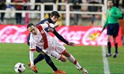 Óliver Torres pelea por un balón con Miku durante el Rayo-Atlético de Copa. | EFE Lecciones de Vallecas o el rollo que no cesa Tomás Cuesta