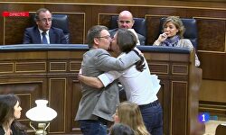 La imagen de la investidura ha sido el tórrido beso de Pablo Iglesias y el camarada Domènech: un beso en los morros, con luz y taquígrafos.