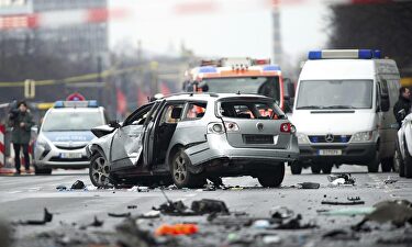 Un coche gravemente dañado por una explosión bloquea la Bismarckstrasse de Berlín | EFE