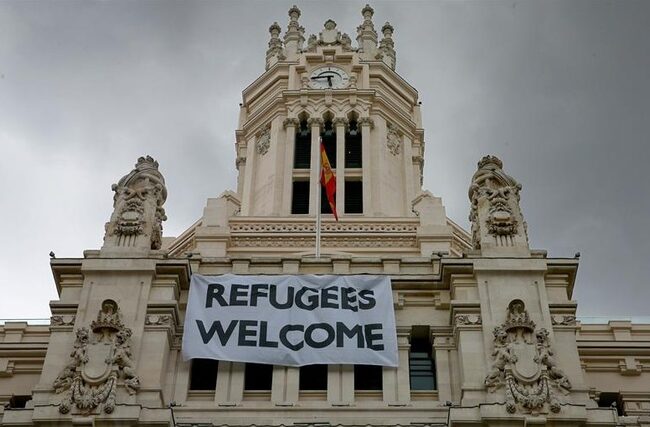 | EFE “Welcome refugees” Cristina Losada Es fácil y demagógico colgar pancartas, mientras le colgamos el problema a 'otros'.