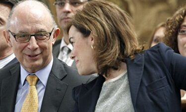 Santamaría y Montoro, con Soria al fondo. | EFE Un ala del PP plantará batalla a Soraya por el control del partido P. Montesinos Aznar responde a Montoro con una denuncia por "revelación de datos tributarios"