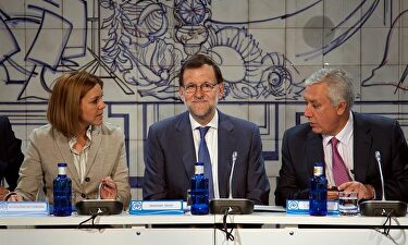 Cospedal, Rajoy y Arenas. | EFE El caos o nosotros Cristina Losada Su discurso anticoaliciones va a pasar factura al PP.
