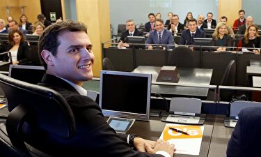 Albert Rivera, con su grupo parlamentario. | EFE Rivera no puede evaluarme, me votaron los militantes y los coruñeses Mariano Alonso Tensa asamblea para explicar la sustitución sin primarias del cabeza de lista en La Coruña.