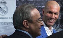 Zinedine Zidane charla con Florentino Pérez el día de su presentación. | Archivo Zidane pide a Florentino el fichaje del director deportivo de la Juventus Primera discrepancia entre Zidane y Florentino Pérez El Madrid planea cambiar a James por Payet