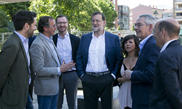 Rajoy, con Alonso y otros miembros del PP vasco, en Durango. | Tarek Sondeos del PP dejan al PSOE tras Podemos y con menos de 90 escaños P. Montesinos Génova pone el foco "en los restos", que podrían ser clave el 26J. En Durango, Rajoy homenajea a las víctimas y alerta sobre "los radicales". Aznar aumenta la brecha con Rajoy en vísperas del 26J "No voy a nombrar a nadie en toda la campaña"