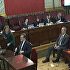 Cuelgan del puente de una autopista en Lérida muñecos con los logos de los partidos constitucionalistas.