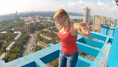 Las imágenes de una chica que camina sobre una estrecha estructura sin protección alguna, a decenas de metros del suelo, recorren Internet como la pólvora.