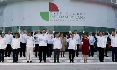 El presidente del grupo Prisa, Juan Luis Cebrián, acompñaó a Rajoy y al Rey en el viaje a Veracruz.