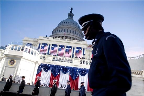 Vista exterior del Capitolio durante el ensayo llevado a cabo horas antes de la ceremonia de investidura en la que Barack Obama. (EFE)