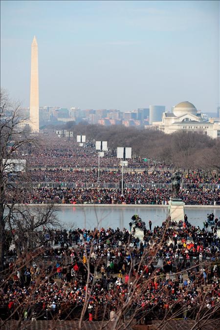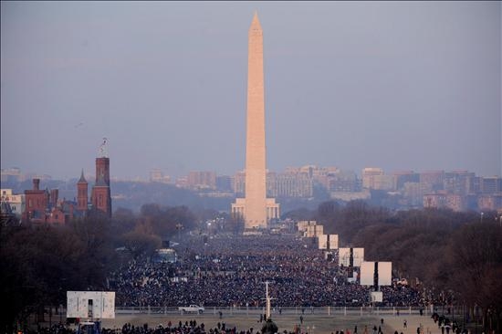 Miles de personas se congregan en el Mall, entre el monumental obelisco de Washington y el Capitolio, horas antes de la investidura de Barack Obama. (EFE)