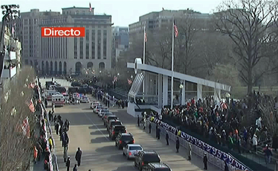 La comitiva parte hacia el Capitolio, donde Obama jurará su cargo. (Imagen TV)
