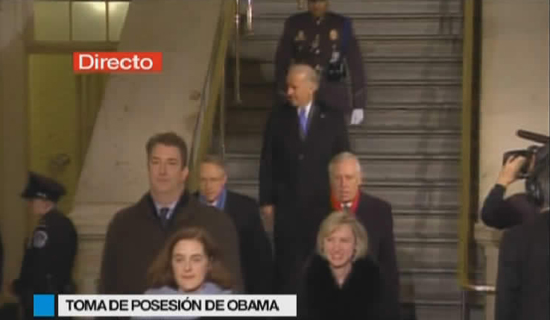 Barack Obama se dirige al estrado en el que, minutos después, juró su cargo como nuevo presidente de los Estados Unidos. (Imagen TV)