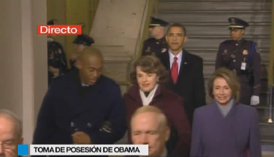 Obama, tras finalizar su primer discurso como presidente de los Estados Unidos. (Imagen TV)