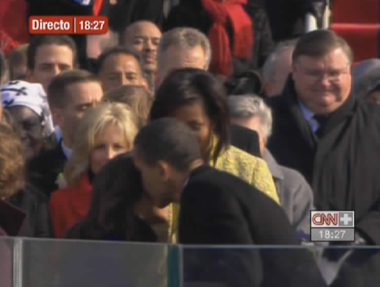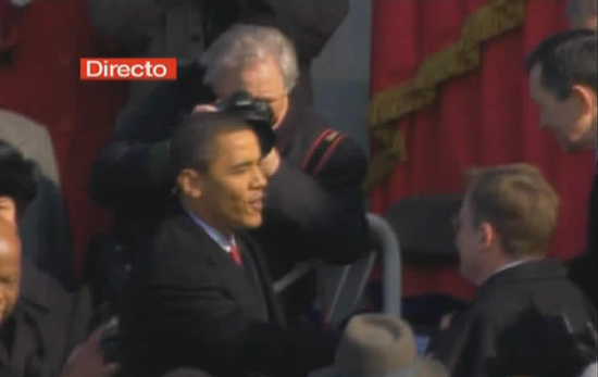 Obama, tras terminar su discurso de toma de posesión. (Imagen TV)