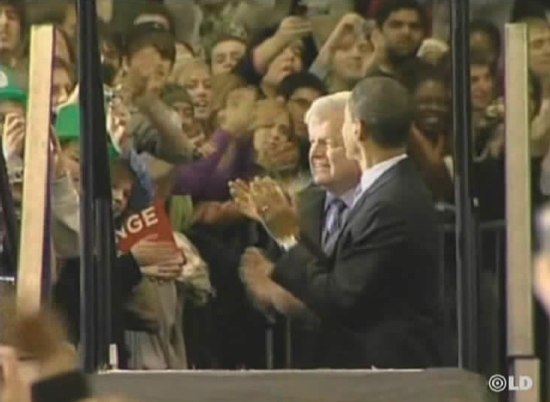 Obama junto a Tedd Kenedy minutos antes de su juramento como nuevo presidente de los Estados Unidos.