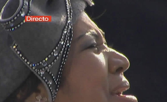 Otro de los momentos de la intervención de Aretha Franklin. (Imagen TV)