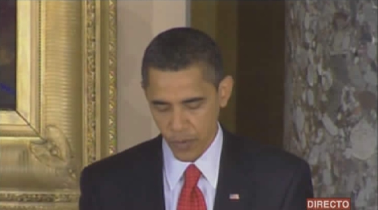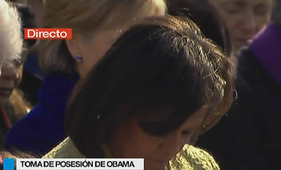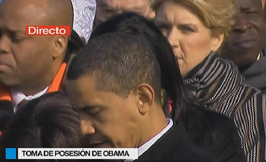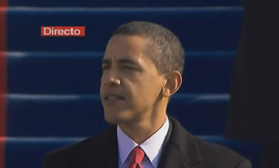 Juramento de Barak Obama: "Soy Barak Hussein Obama. Juro solemnemente que desempeñaré legalmente el cargo de Presidente de los Estados Unidos y que sostendré, protegeré y defenderé la Constitución de los Estados Unidos empleando en ello el máximo de mis facultades.Que Dios me ayude". (imagen TV)
