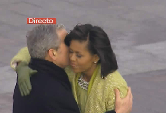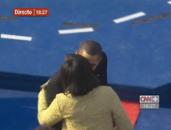 Obama se abraza y se besa con su esposa Michelle. (Imagen TV)