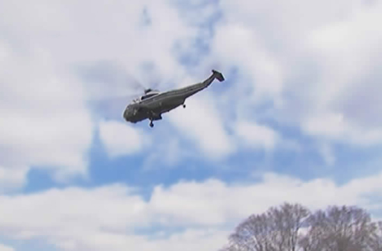 El helicóptero que traslada a los Bush hasta Texas inicia el viaje. (Imagen TV)
