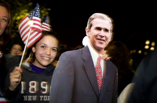 Con un cartón de Bush