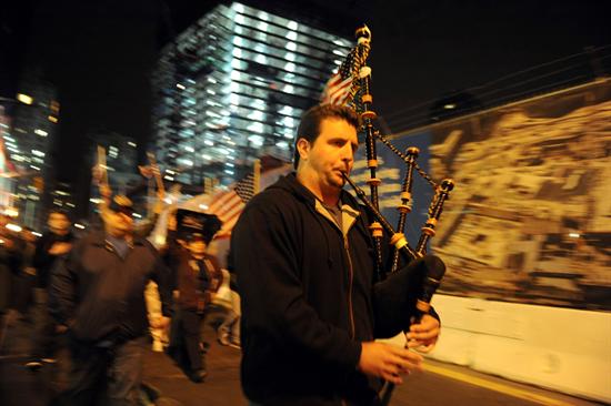 Un hombre toca la gaita en la zona Zero en Nueva York