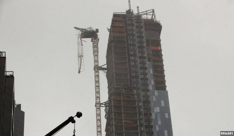La parte superior de la grúa, usada en la construcción de un exclusivo edificio de viviendas y oficinas llamado One57, se dobló hoy en torno a las 14.30 hora local (18.30 GMT) por los fuertes vientos.