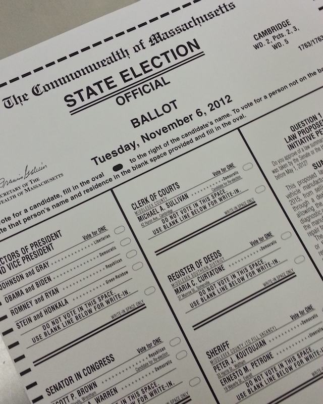 Papeleta de votación en el Estado de Massachusetts. Desde el futuro presidente de los EEUU hasta el Sheriff de Middlesex County.