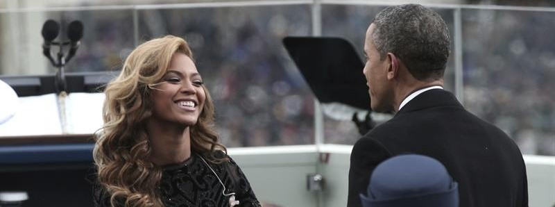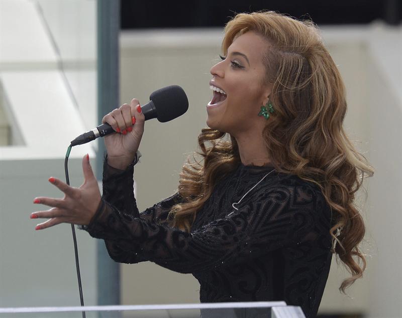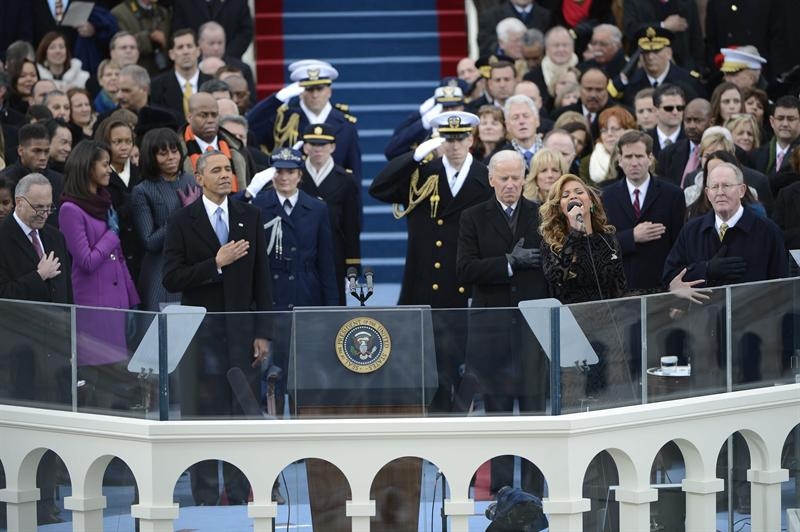 La cantante estadounidense Beyonce interpreta el himno nacional durante la ceremonia de investidura del segundo mandato de Barack Obama